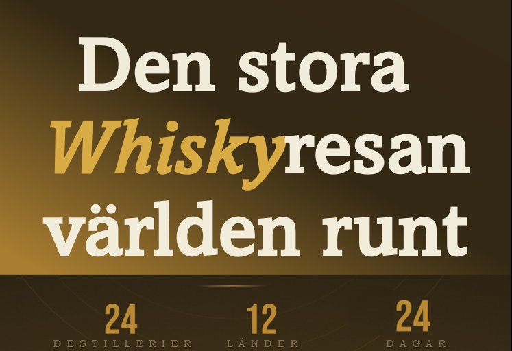 Tillbaka igen och denna gång med en fiktiv resa i whiskyns tecken, 24 destillerier, 12 länder på 24 dagar med trevliga smaktillbehör och mängder av restips.